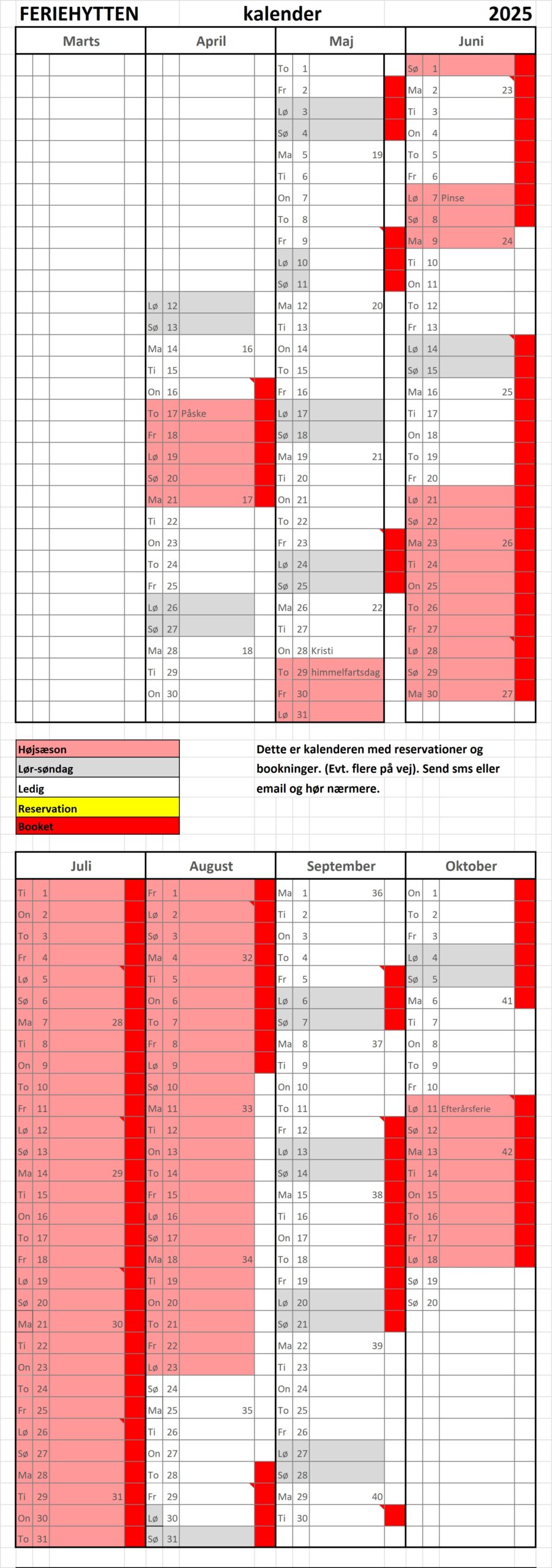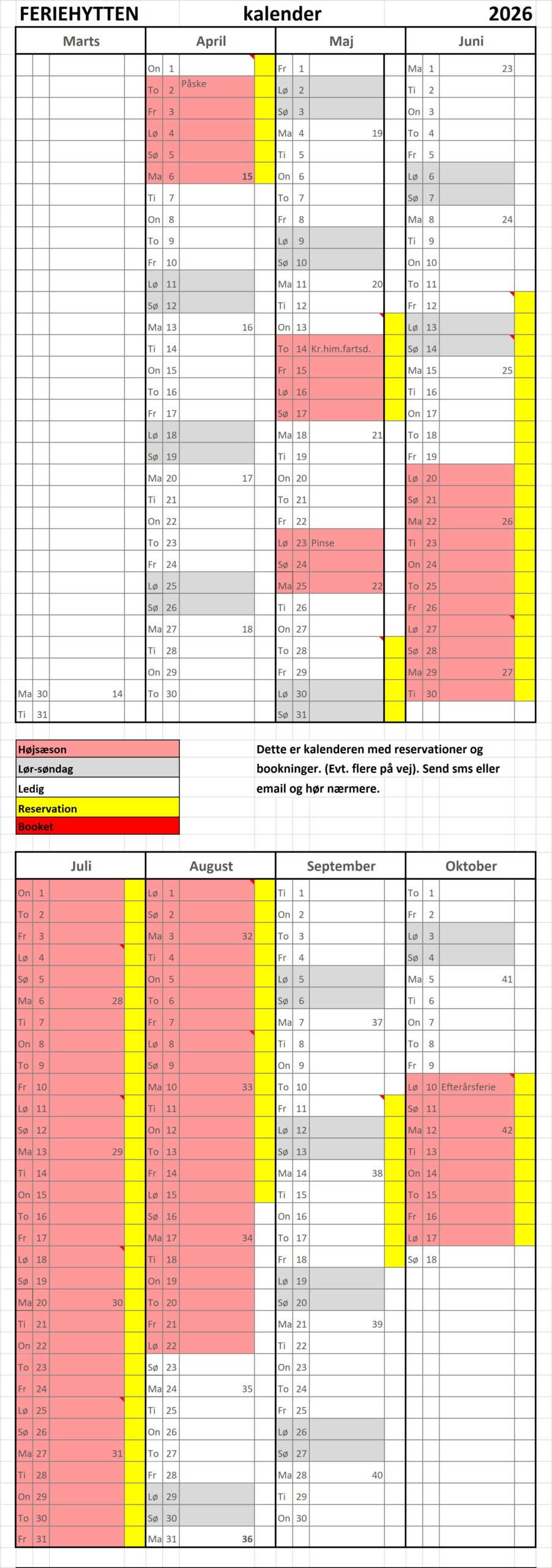 – Fra uge 26 til 34 kan man kun leje Feriehytten fra lørdag til lørdag